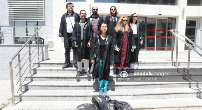 Kırklareli'nde avukatlar farkındalık amacıyla baro binası çevresindeki çöpleri topladı