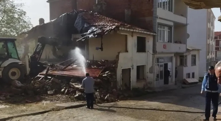 Keşan'da güvenlik açısından tehdit oluşturan metruk bina yıkıldı