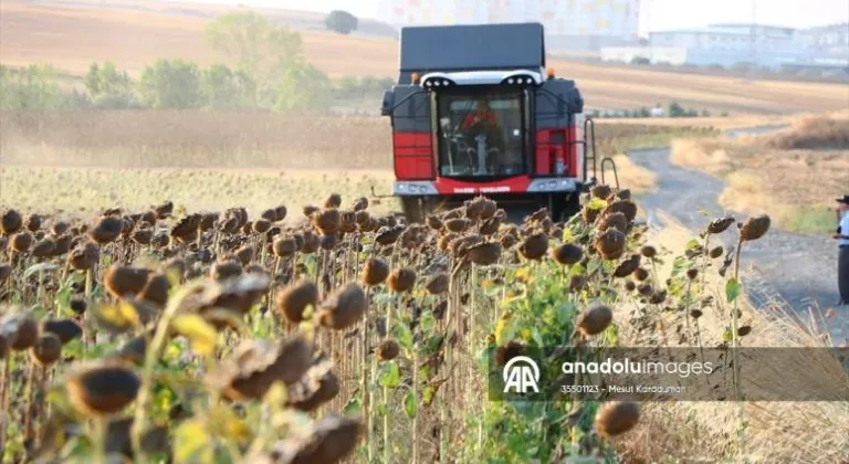 Tekirdağ'da yerli hibrit tohum üretimi ayçiçeği hasadı gerçekleştirildi