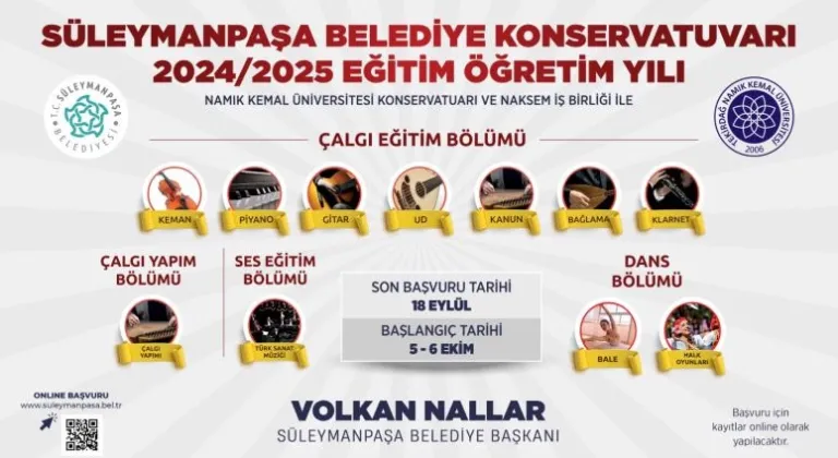 Süleymanpaşa Belediye Konservatuvarı kayıtları başladı