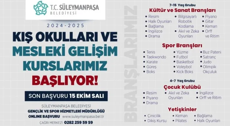 Süleymanpaşa Belediyesi Kış Okulları ve Mesleki Gelişim Kursları Başlıyor
