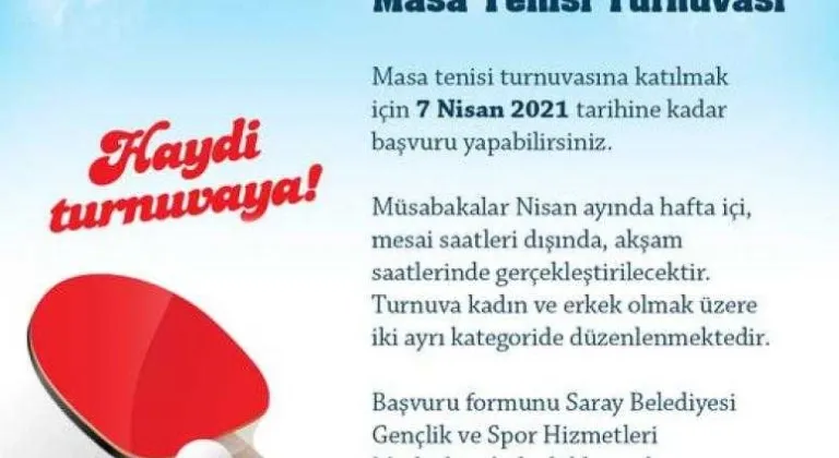 SARAY BELEDİYESİ 2.GELENEKSEL MASA TENİSİ TURNUVASI KAYITLARI BAŞLADI