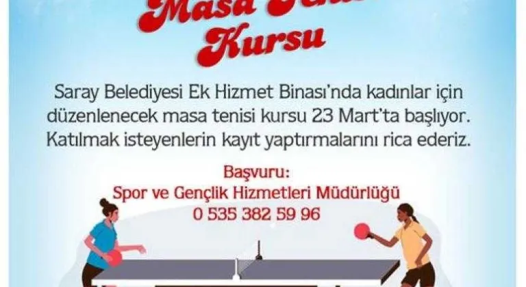 SARAY BELEDİYESİ MASA TENİSİ KURSU KAYITLARI DEVAM EDİYOR