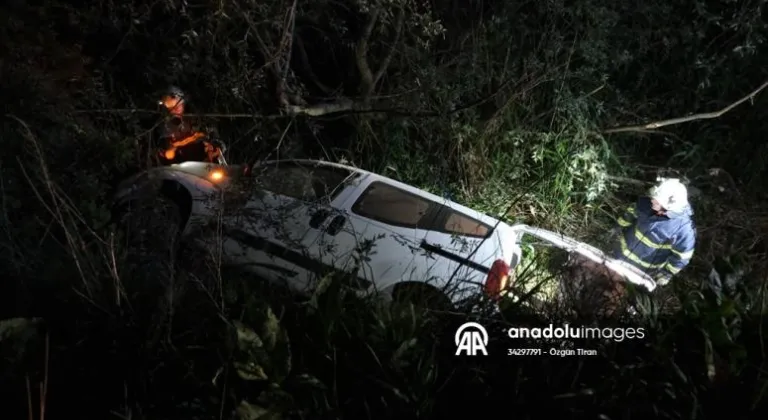 hafif ticari aracın dere yatağına devrilmesi sonucu 2 kişi yaralandı.