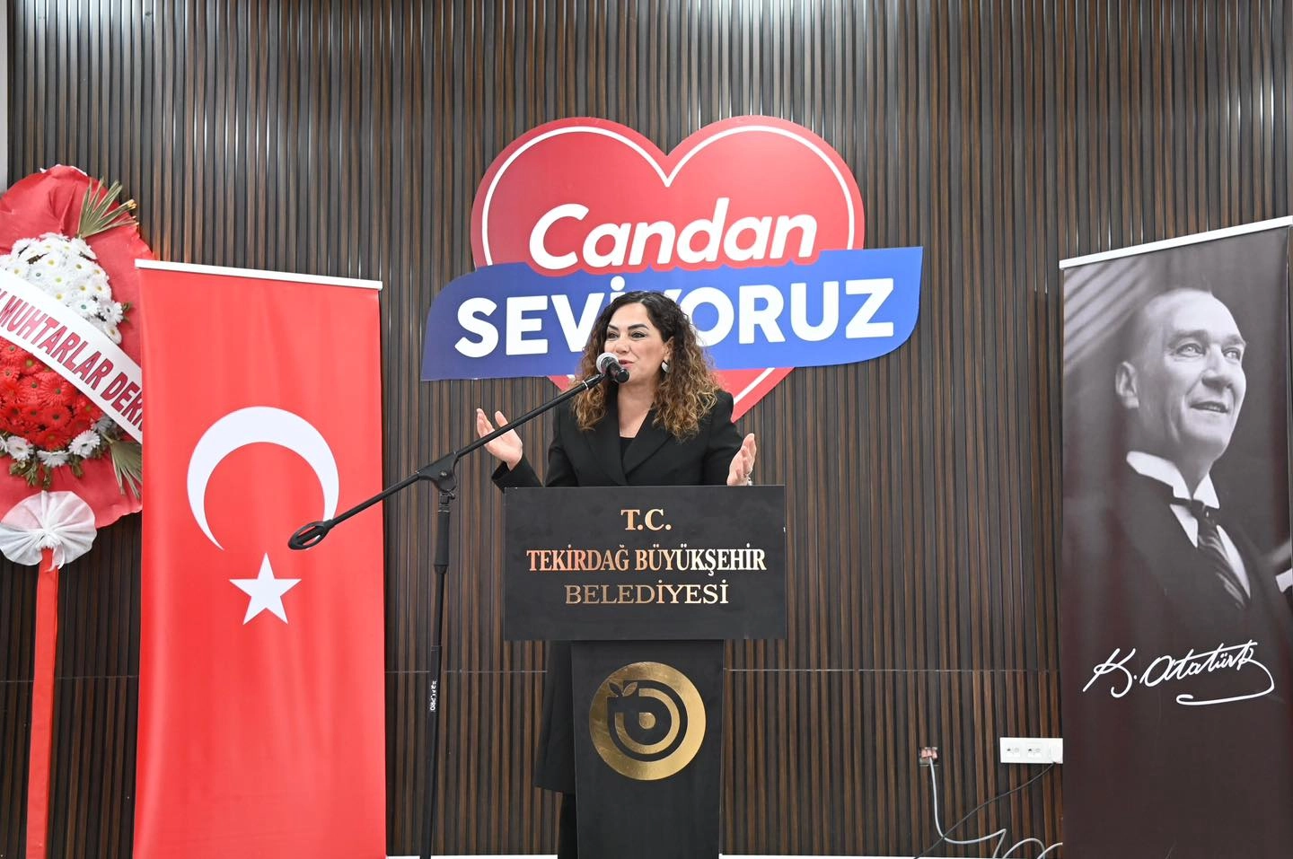 Başkan Dr. Candan Yüceer sözlerine “Burada sadece düğünler ve nişanlar olmayacak elbette. Burası, tıpkı bugün olduğu gibi, birlik ve beraberlik içinde buluşacağımız, sosyal etkinlikler düzenleyebileceğimiz, toplantılar yapabileceğimiz, yeni beceriler kazanabileceğimiz bir merkez olacak. Eminim ki burası mutluluğun, birlik ve dayanışmanın simgesi haline gelecek. Burası bizim için sadece bir mekan değil, Beyazköy’ün birlik ve beraberliğini temsil eden bir yapı olacak. Biz yola çıkarken "Büyük Ailem Tekirdağ" dedik. Bu büyük aileye gözümüz gibi bakmalıyız. Nerede olursa olsun, Beyazköy’de, Saray’ın merkezinde, Süleymanpaşa’da, Çerkezköy’de, Ergene’de, hiçbir ayrım gözetmeden tüm vatandaşlarımıza dokunmalıyız. Çocuklardan gençlere, kadınlardan büyüklerimize kadar herkesin yanında olmalıyız. Kırsaldan merkeze kadar Tekirdağ’ı her alanda güçlendiren projeleri hayata geçirme sözü verdik. İşte bugün Beyazköy’de hayata geçirdiğimiz düğün salonu da bu anlayışın bir ürünü. Şubat ayı biliyorsunuz en kısa ay. Ama biz bu kısa aya tam dokuz açılış sığdırdık. Sığdıramadıklarımızı da önümüzdeki günlerde gerçekleştireceğiz. Saray Kapalı Spor Salonu’muzun açılışı var, ardından Şarköy Kreşi’nin açılışını yapacağız. Allah nasip ederse önümüzdeki aylarda Şarköy İtfaiye İstasyonu’nun temelini atacağız. Ayrıca biliyorsunuz, 11 ilçeye 11 kreş sözü verdik. Tıpkı bu düğün salonları gibi, taziye evleri de bizim, cenazeler de bizim. Saray’dan ve diğer ilçelerden gelen taziye evi talepleri oldu. Düğün salonu talepleri oldu. Bu talepleri de hızla karşılamak için çalışmalarımızı sürdürüyoruz. Az önce Ahi Mehmet Mahallesi’nden geldik. Orada Güneş Enerjisi Santrali açılışını gerçekleştirdik. Bu proje hem enerji maliyetimizi düşürecek hem de çevremizi koruyacak. Önümüzde iki büyük projemiz daha var, onların da temelini atacağız. Bu yılın sonunda Tekirdağ Büyükşehir Belediyesi, kendi enerjisini güneş ve rüzgar enerjisinden üreten bir büyükşehir olacak.”