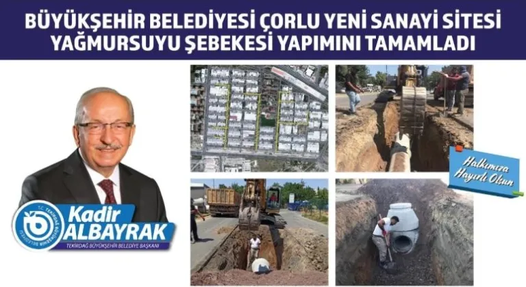 Tekirdağ Büyükşehir Belediyesi il genelinde başlattığı alt ve üst yapı çalışmalarına hız kesmeden devam ediyor. Bu kapsamda Çorlu ilçesinde Yeni Sanayi Sitesi Yağmursuyu Şebekesi Yapımı tamamlandı.