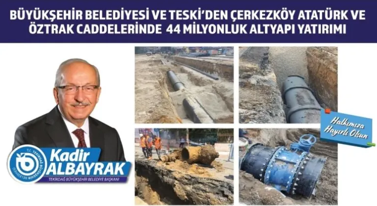 Konu hakkında açıklama yapan Tekirdağ Büyükşehir Belediye Başkanı Kadir Albayrak, “Büyükşehir Belediyesi ve TESKİ olarak ilçelerimizde alt yapı ve üst yapı çalışmalarını büyük bir titizlikle sürdürüyoruz. Çerkezköy İlçesi, Atatürk ve Öztrak Caddeleri Altyapı (İçmesuyu, Kanalizasyon ve Yağmursuyu) İnşaatı işi” kapsamında tahmini 44,000,000.00 TL yatırım yapılması planlanmaktadır. Projemizin vatandaşlarımıza ve ilçemizde hayırlı olmasını dilerim.” dedi.