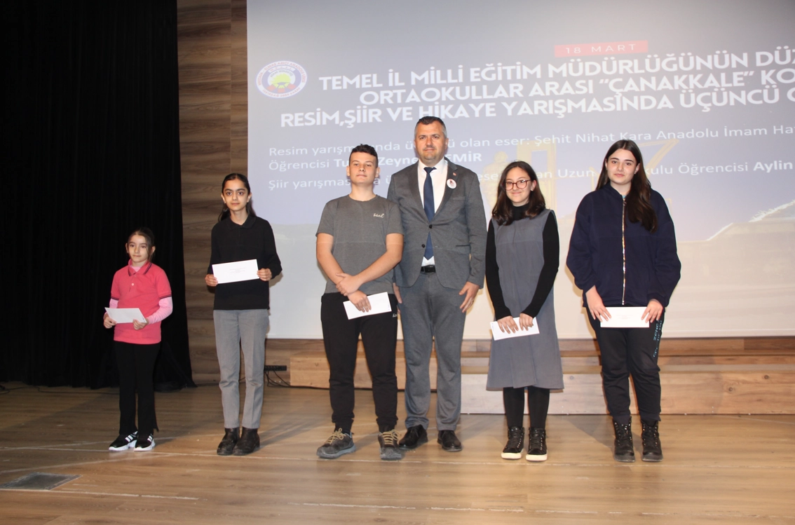 Programda, günün anlam ve önemini anlatan bir video gösterimi yapıldı. Ardından, 18 Mart Çanakkale Zaferi ve Şehitleri Anma Günü kapsamında düzenlenen şiir, mektup ve kompozisyon yarışmalarında dereceye giren öğrenciler eserlerini okudu.