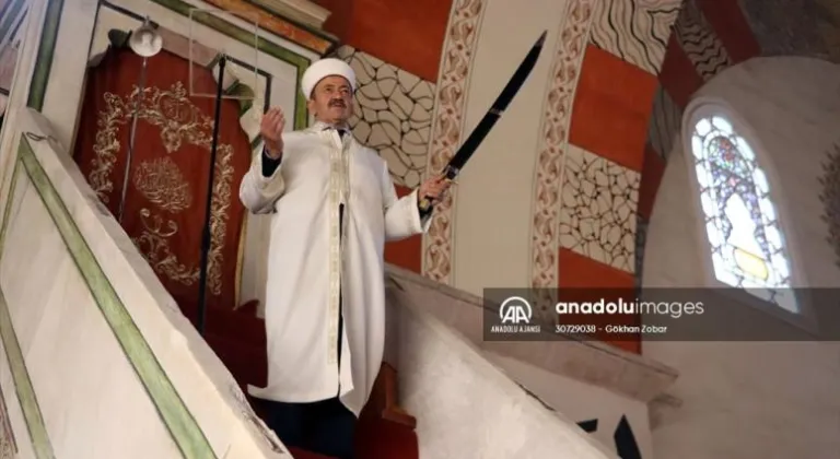 Eski Cami Müezzini İsmail Şen, AA muhabirine, Osmanlı mirası olan kılıçla hutbe geleneğini sürdürmenin ve Eski Cami'de görev yapmanın mutluluğunu yaşadıklarını söyledi.