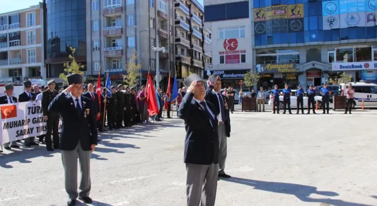 Yurt genelinde olduğu gibi Saray’da da Mustafa Kemal Atatürk’e “Mareşal” rütbesi ve “Gazi” unvanı verilişinin yıl dönümü olan Gaziler Günü, düzenlenen törenle kutlandı. Törende; Kaymakam Adem Ünal, Garnizon Komutanlığı’nda görevli bir subay, Belediye Başkanı Özgen Erkiş ve Türkiye Muharip Gaziler Derneği Saray Şubesi Başkanı Hüseyin Taşkın tarafından Atatürk Anıtı’na çelenk sunuldu. Saygı duruşunda bulunulması ve İstiklal Marşı’mızın okunmasının ardından günün anlam ve önemini belirten konuşmayı Garnizon Komutanlığı’ndan görevli Ü. Tğm. Özcan Burak Yüce Muharip Gaziler Derneği Saray Şube Başkanı Hüseyin Taşkın yaptı. Her karışı Şehit kanıyla sulanmış mukaddes vatan topraklarını savunulmasında Gazilik onuruna erişen kahramanların kıvanç gününü kutlamanın derin heyecanı içerisindeyiz. Bugün aynı zamanda, TBMM tarafından ebedi başkomutanımız Gazi Mustafa Kemal Atatürk’e Gazilik unvanı, ve Maraşel rütbesinin de verildiği gününde yıl dönümüdür. Gazilik; Türk vatanseverliğinin, Türk kahramanlığının, Türk fedakarlığının yaşayan destanı, Gazi ise; bu destanı yazan kahramanın adıdır. Türkiye Muharip Gaziler Derneği Saray Şubesi Başkanı Hüseyin Taşkın konuşma yaptı. Taşkın, “ Vatanımızın kurtuluşunda düşmanla amansız mücadele eden, malül veya gazi olarak hayat mücadelesi veren bu değerli şahıslara sahip çıkmak ve onlara saygılı olmak milletimizin tarihine ve mazisine bağlılığının bir ifadesidir. Aynı zamanda Atatürk’ün bir vasiyeti olarak kabul edilmelidir. Bugün bizlerle beraber olarak mutluluğumuzu paylaşan sizlere Türk Gazileri adına teşekkür ederim. Başta Mustafa Kemal Atatürk ve silah arkadaşları olmak üzere bu vatan için toprağa düşen tüm şehitlerimizin ve ebediyete intikal eden gazilerimizin manevi huzurunda saygı ile eğilir, kahraman gazilerimize sevgi ve şükranlarımızı sunarım” ifadesinde bulundu. Tören alanındaki program sona erdi. KİMLER KATILDI? Çelenk Sunma Töreni’ne Kaymakamı Adem Ünal, Garnizon Komutanlığından görevli bir subay, Belediye Başkanı Özgen Erkiş, Türkiye Muharip Gaziler Derneği Saray Şubesi Başkanı Hüseyin Taşkın’ın yanı sıra siyasi parti temsilcileri, idare amirleri, gaziler ve vatandaşlar katıldı. Protokol , Saray Muharip Gaziler Derneği Şubesi’nde Gazileri ziyaret etti. Protokol, Gazilerle bir araya geldiği ziyarette kısa bir konuşma yaparak Gazilerin gününü kutladı.