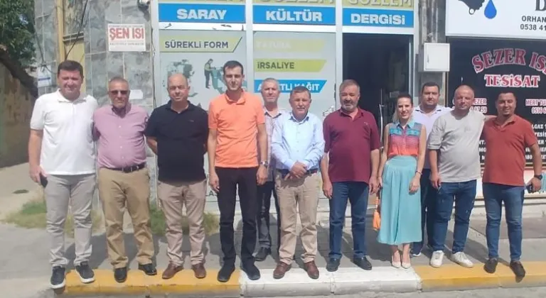 Cumhuriyet Halk Partisi (CHP) Saray İlçe Yönetimi gazetemizi ziyaret etti. Geçtiğimiz aylarda yapılan Saray CHP İlçe Teşkilatı Olağan Kongresi’nde İlçe Başkanlığı’na seçilen Erol Gürler ile yeni yönetimi gazetemizi ziyaret ederek, ilçedeki siyaset hakkında görüş alışverişinde bulunuldu.