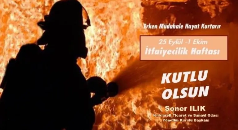Kırklareli Ticaret ve Sanayi Odası (Kırklareli TSO) Yönetim Kurulu Başkanı Soner Ilık, ülkemizde her yıl 25 Eylül - 01 Ekim tarihleri arasında kutlanmakta olan “İtfaiyecilik Haftası” dolayısıyla yayımladığı mesajında şunları kaydetti: