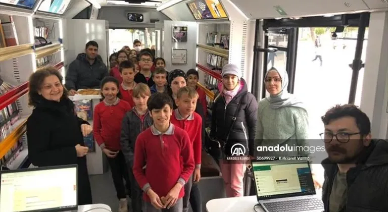 Kırklareli'nde 59. Kütüphane Haftası etkinlikleri kapsamında gezici kütüphane öğrencilerle buluştu.