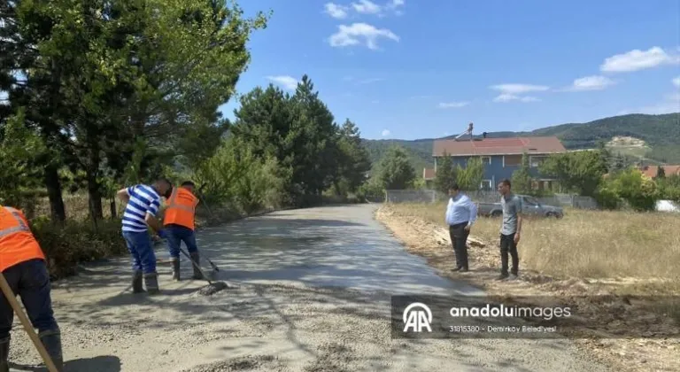 Demirköy Belediyesi Fen İşleri Müdürlüğü ekipleri, Hamdibey Mahallesi'nde beton yol çalışmasında bulunuyor.