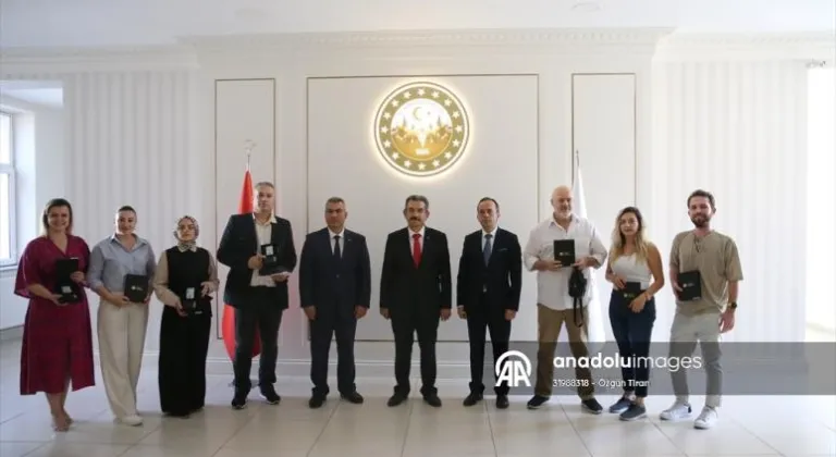 Vali Ekici, Atatürk Toplantı Salonunda, Cumhurbaşkanlığı İletişim Başkanlığı tarafından verilen basın kartlarını almaya hak kazanan 8 gazeteciye kartlarını verdi.