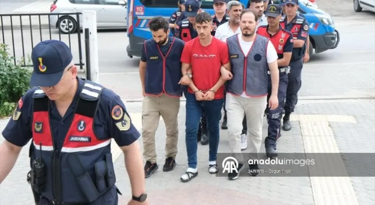 İl Jandarma Komutanlığındaki işlemleri tamamlanan, aralarında bir engellinin de bulunduğu 5 zanlı adliyeye sevk edildi.
