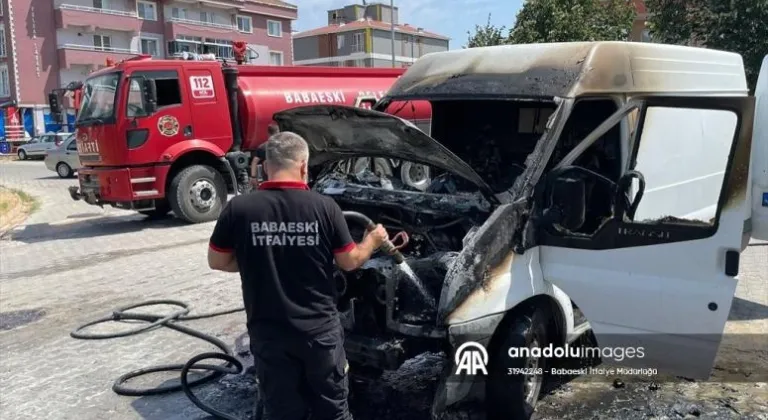 Babaeski ilçesinde park halindeki panelvan çıkan yangın sonucu hasar gördü.