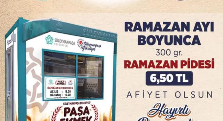 Birçok mahallede konuşlandırılan Paşa Halk Ekmek büfeleri, Süleymanpaşa Belediyesi ve ilçede faaliyet gösteren çok sayıda ekmek fırınının işbirliği ile bir yıldan uzun süredir ihtiyaç sahibi vatandaşlara uygun fiyatlı ekmek ulaştırıyor. Ramazan ayının gelmesi ile birlikte Ramazan geleneklerimizden biri olan pide satışı da Paşa Halk Ekmek büfelerinde yerini aldı.