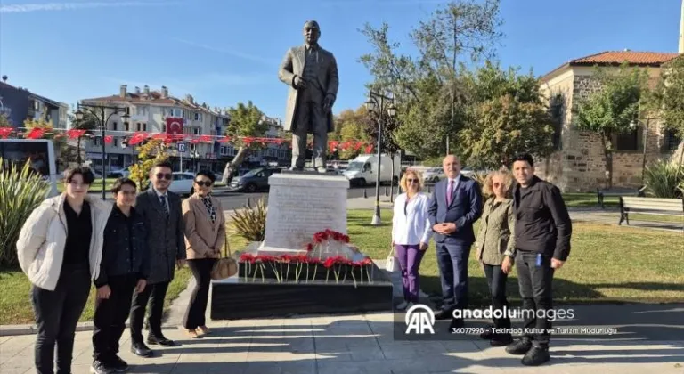 İl Kültür ve Turizm Müdürü Ahmet Hacıoğlu, Tekirdağ Namık Kemal Kütüphanesi Müdürü Hamide Çakır ile Yahya Kemal Beyatlı Güzel Sanatlar Lisesi öğrencileri, Beyatlı'nın kent merkezindeki heykeline karanfil bıraktı.