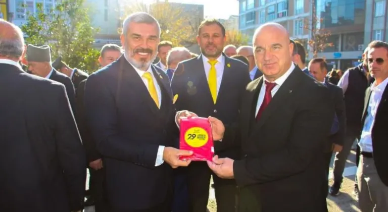 KURTULUŞ TÖRENLERİNE KATILDI BAYRAK HEDİYE ETTİ