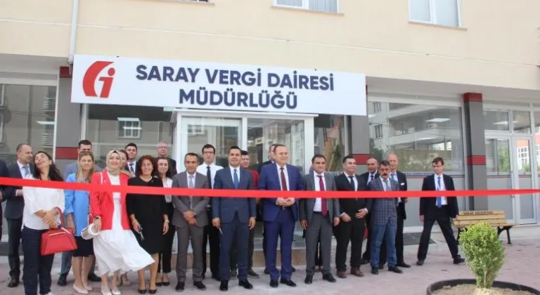 Tekirdağ Vergi Dairesi Başkaı Mustafa Taşkıran ve Tekirdağ Defterdarı  Özkan Coşar, Saray Vergi Dairesi yeni yerin açılış kurdelesini, birlikte keserek hizmete sundu.