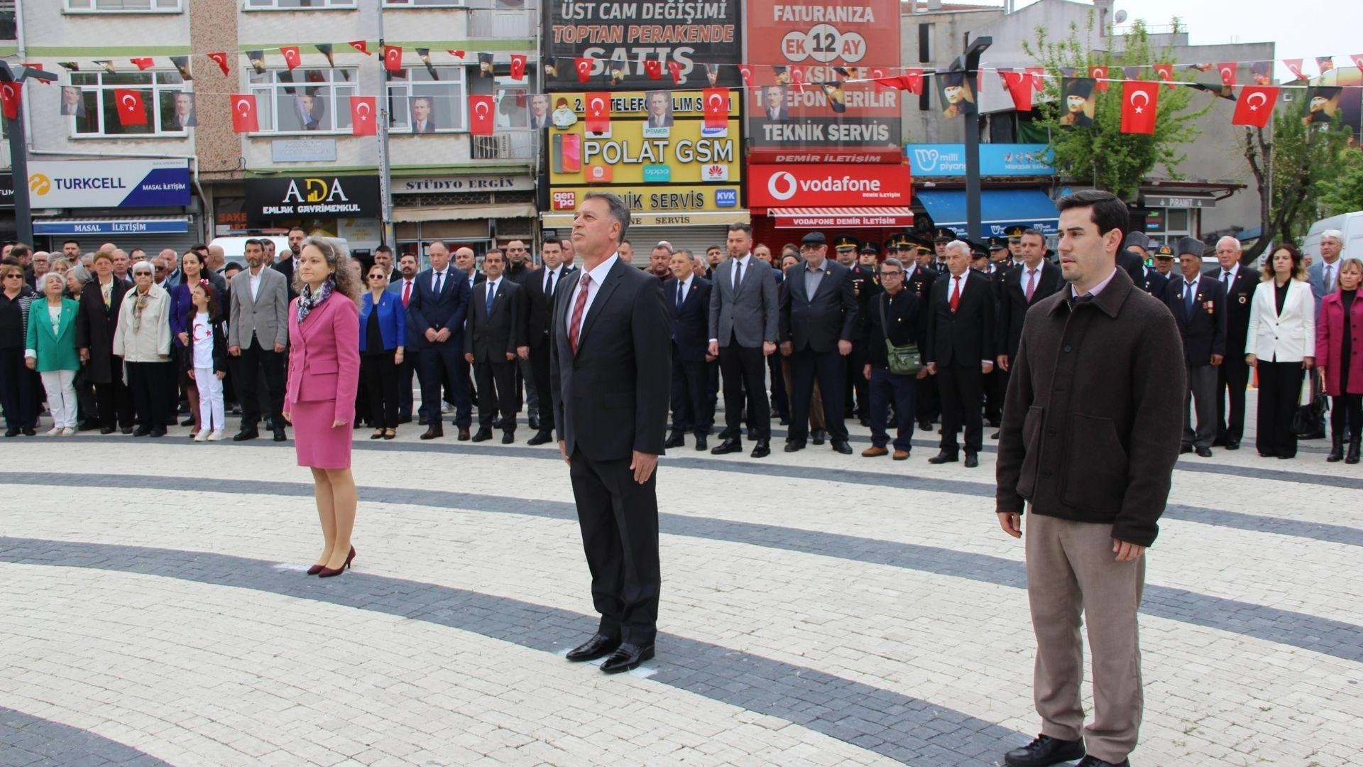 Saray İlçe Milli Eğitim Müdürü Yusuf Hayri, milli eğitim memurları eşliğinde Atatürk büstüne çelenk sundu. Ardından saygı duruşunda bulunuldu ve hep bir ağızdan İstiklal Marşı okundu.