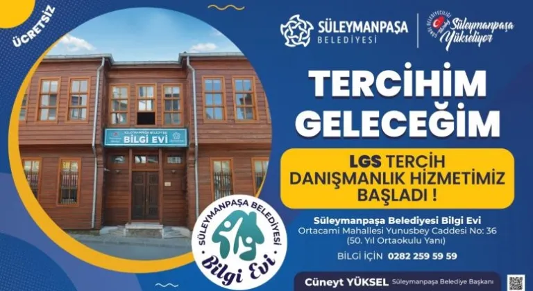 Süleymanpaşa Belediyesi, “Tercihim Geleceğim” sloganıyla Liselere Geçiş Sistemi Sınavı’nda başarılı olarak tercih yapmaya hak kazanan öğrencilere tercih danışmanlığı hizmeti başlattı.