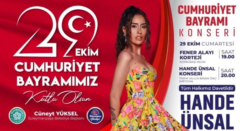 Süleymanpaşa Belediyesi, 29 Ekim Cumhuriyet Bayramı dolayısıyla muhteşem bir kutlama programı organize ediyor.