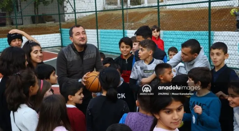 Çocuklarla bir süre sohbet eden Yüksel, daha sonra parkta bulunan sahada basketbol oynadı.