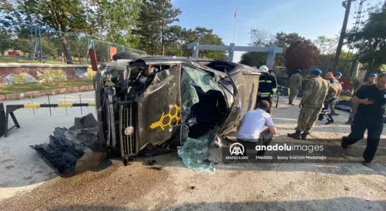 Kazada yaralanan sürücü ve araçtaki Levent S. ambulansla Saray Devlet Hastanesine kaldırıldı.