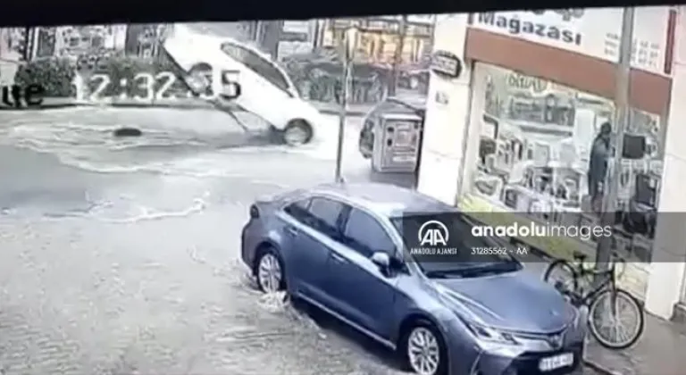 Maddi hasarın yaşandığı olayda, çekici otomobili alarak yoldan kaldırdı. Olay bir iş yerinin güvenlik kamerasına yansıdı.