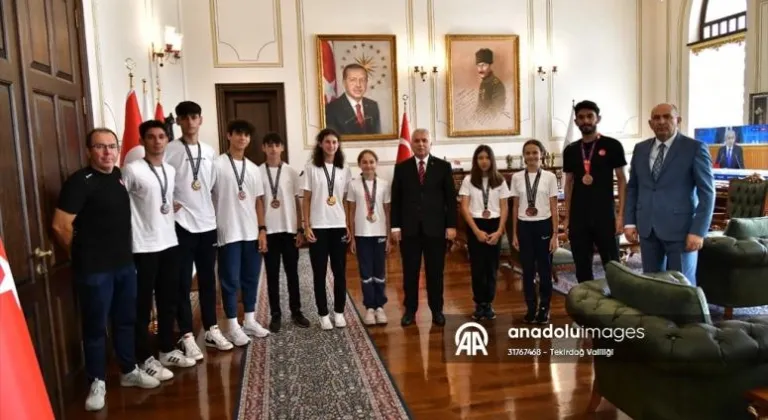 Tekirdağ Valisi Aziz Yıldırım, atletizmde farklı kategorilerdeki ulusal ve uluslararası müsabakalarda dereceye giren sporcuları kabul etti.