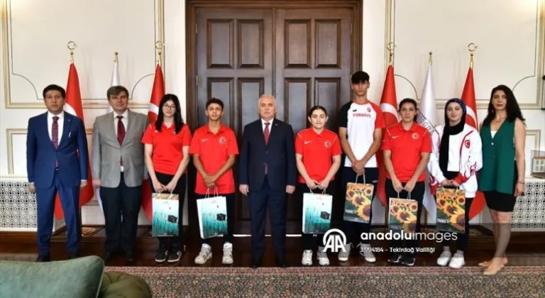Tekirdağ Valisi Aziz Yıldırım, farklı spor branşlarında ulusal ve uluslararası müsabakalarda dereceye giren öğrencileri kabul etti.