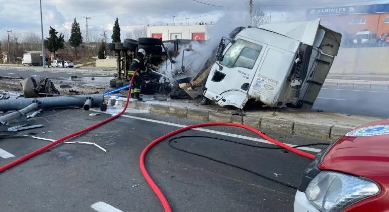 Kaza nedeniyle bir süre kontrollü sağlanan trafik akışı, tırın çekiciyle yoldan kaldırılmasıyla normale döndü.