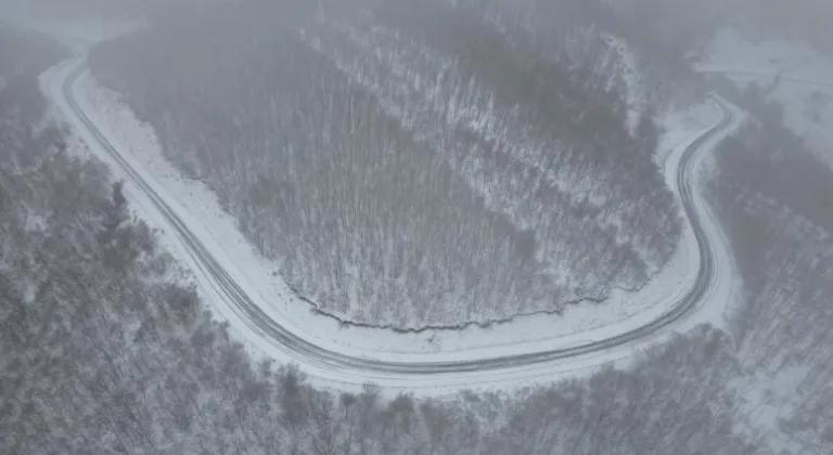 Kar yağışının ardından ilçedeki bazı ormanlık alanlar dron ile görüntülendi.