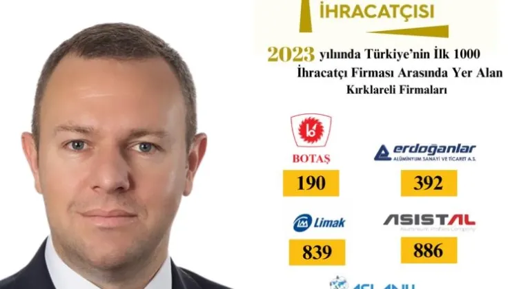 Kırklareli Ticaret ve Sanayi Odası Yönetim Kurulu Başkanı Soner Ilık yaptığı açıklamasında; “Türkiye İhracatçılar Meclisi'nin (TİM) her yıl geleneksel olarak düzenlediği “İlk 1000 İhracatçı Raporu” açıklandı. “2023 Yılı’nda En Fazla İhracat Yapan İlk 1000 Firma”nın duyurulduğu listeye Kırklareli’den 5 Firma girdi.